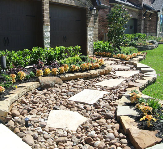 Common types of landscaping stone include granite, slate, limestone, sandstone and bluestone.